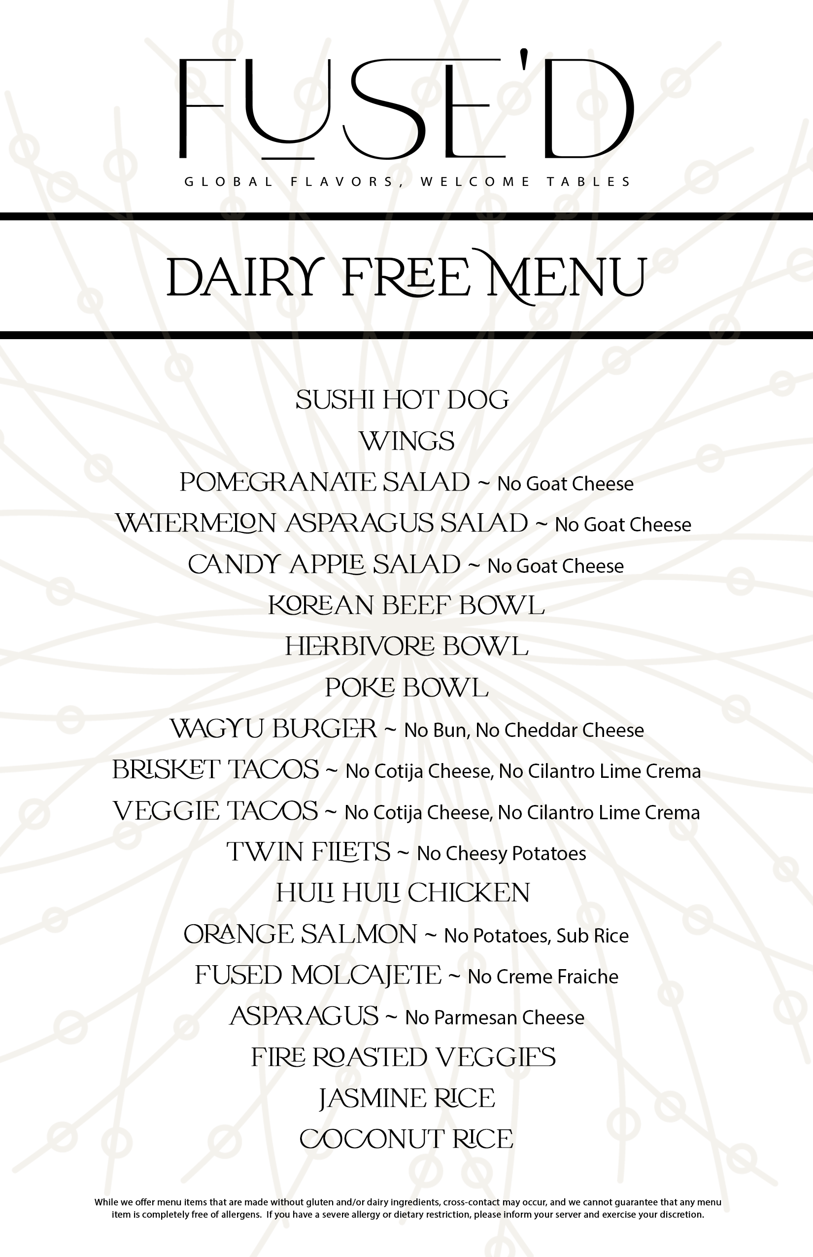 - Dairy-Free Menu